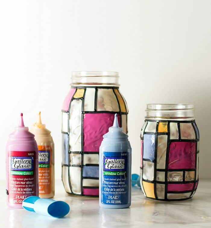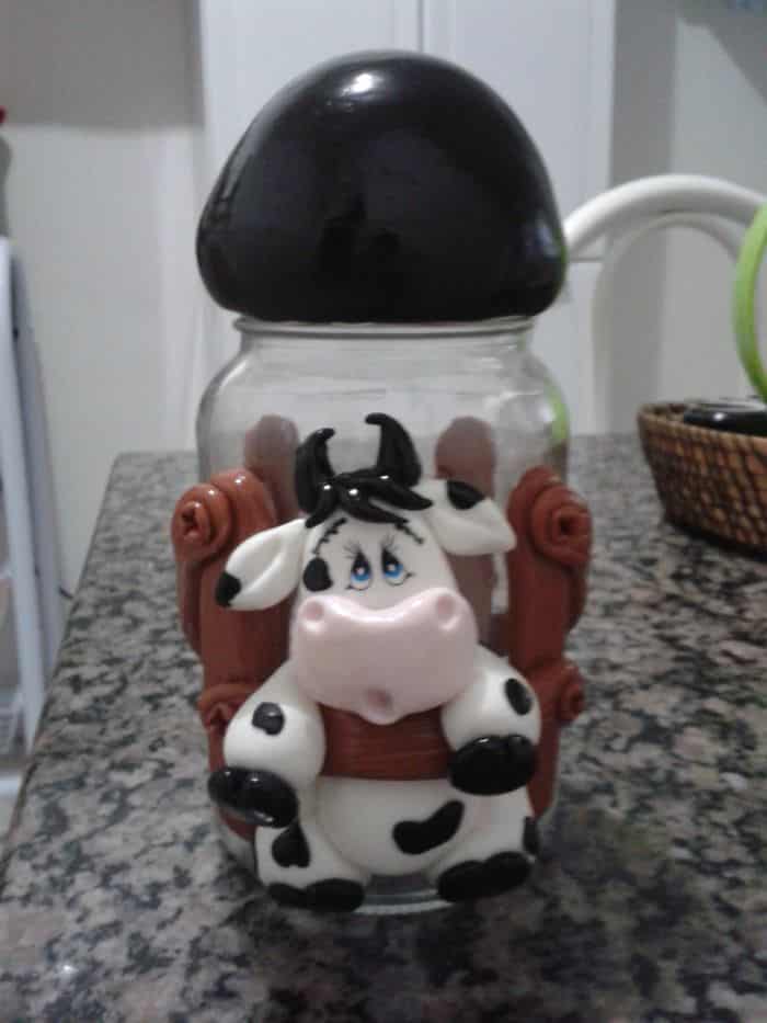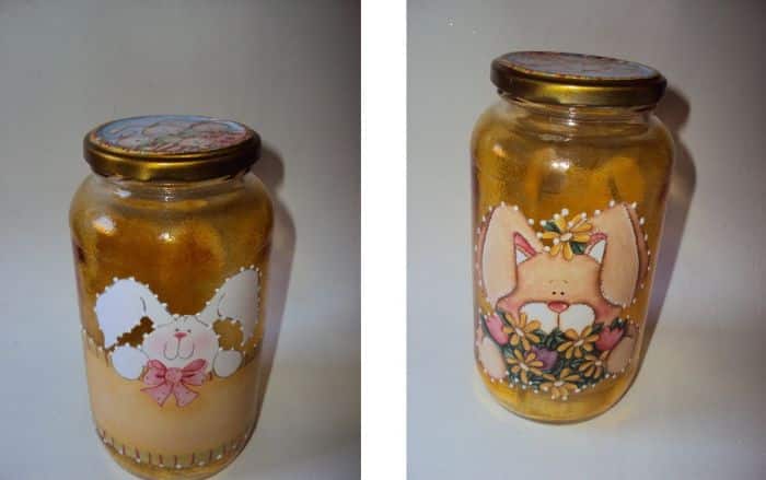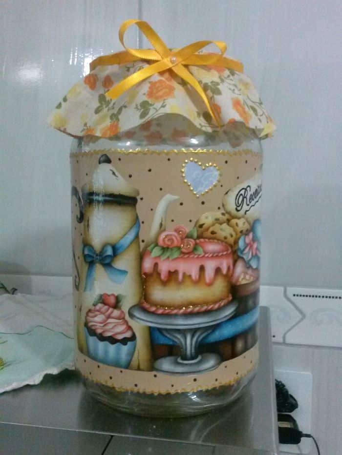 Você pode pintar a parte de fora do seu pote, para poder usar o recipiente para guardar guloseimas. Transfira o molde, faça o contorno com tinta alto-relevo e pinte com tinta para vidro.