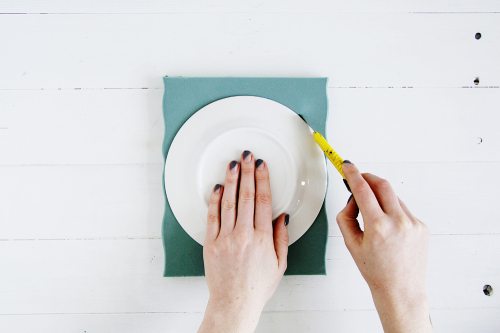 Em seguida, risque e corte um círculo com o tamanho que você quer para o seu relógio na espuma fina ou no EVA grosso escolhido.