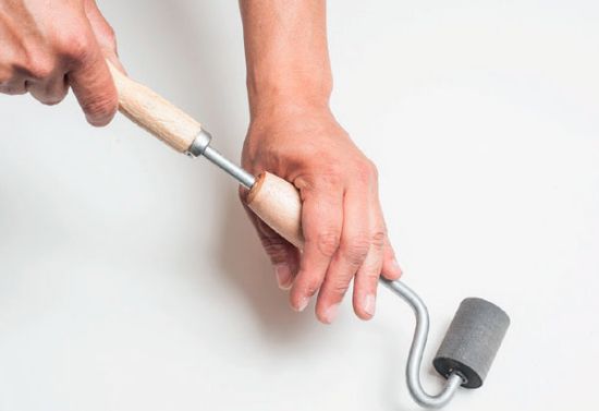 Em seguida, passe o rolete de pressão em toda a superfície (essa ferramenta faz com que a fixação seja uniforme, evitando bolhas ou o descolamento das pontinhas). Depois, use a furadeira para fazer as aberturas que receberão de volta os puxadores.