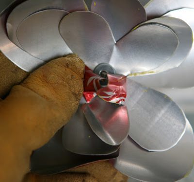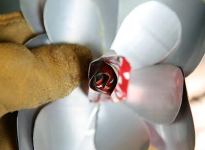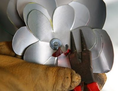 Agora, para finalizar a sua peça, basta terminar de curvar as pétalas e cortar algumas folhas, nas latinhas com cor verde, se você desejar. E está pronto!