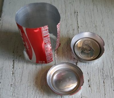 Comece separando todos os materiais que você vai utilizar em seu artesanato. Depois retire a parte superior e também a parte inferior da sua latinha. Corte toda a parte principal, a parte que sobrou.