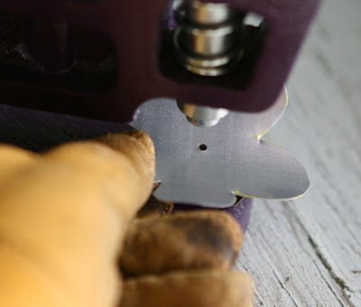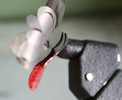 Logo após, posicione a flor no fixador e fixe a outra parte do rebite.