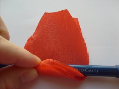 Para deixar as pétalas com formato curvado das pétalas da rosa, enrole o monte de pétalas em uma caneta, mas começando da ponta da pétala que fica para fora. E após enrolar todo o monte, pressione com as mãos em direção ao centro, para frisar as pétalas.