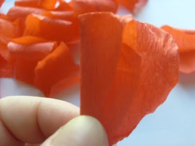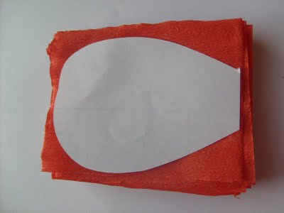 Posicione um molde de pétalas (com o formato que você desejar) e corte todo o monte que se formou com o papel crepom.