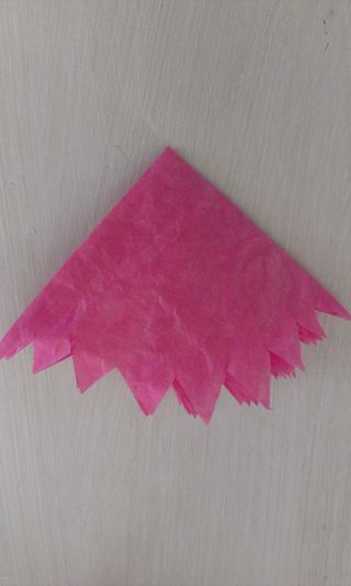 Logo após, corte outro círculo em outra cor de papel de seda, dobre em quatro partes e corte aborda em formato ondulado.
