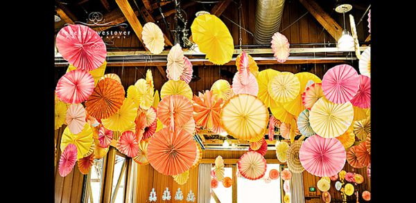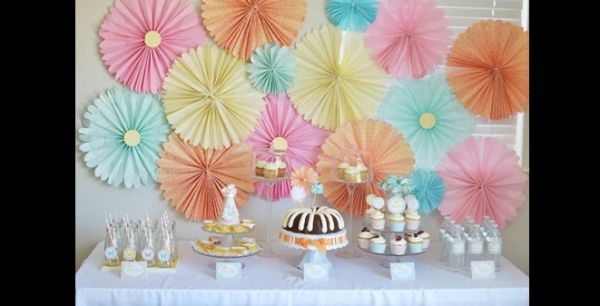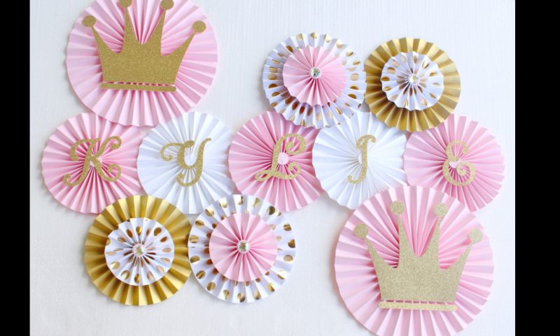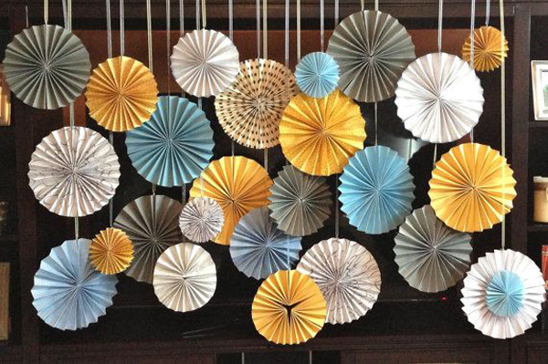 Veja mais modelos de decoração com rosetas de papel, para se inspirar.