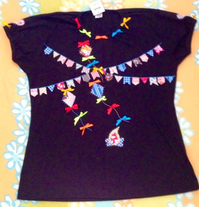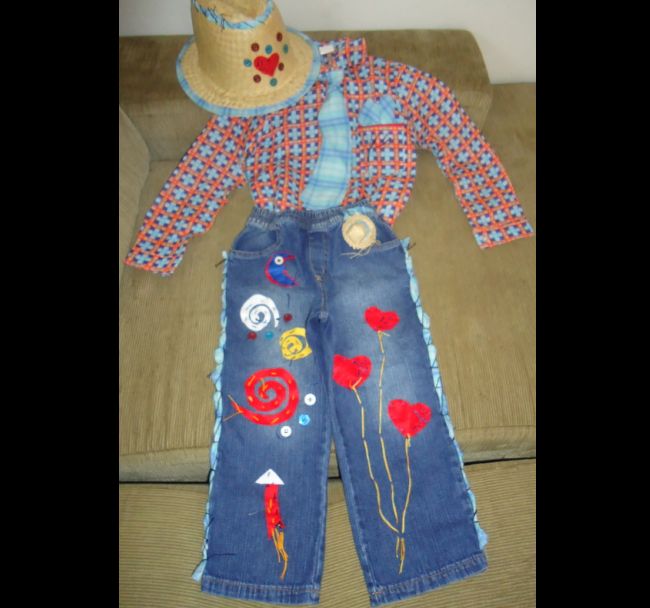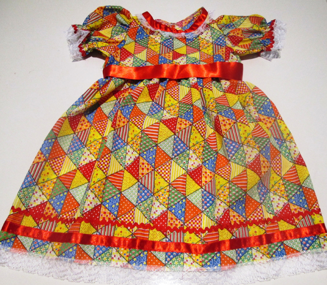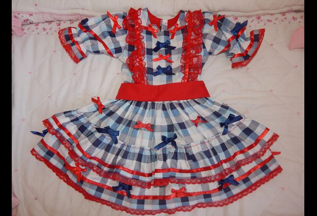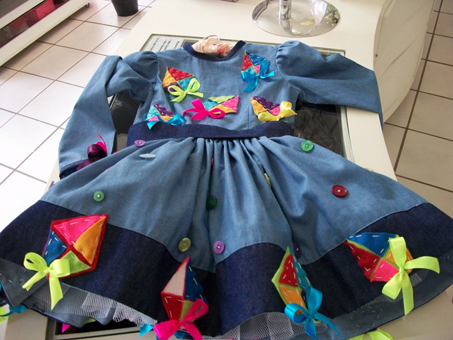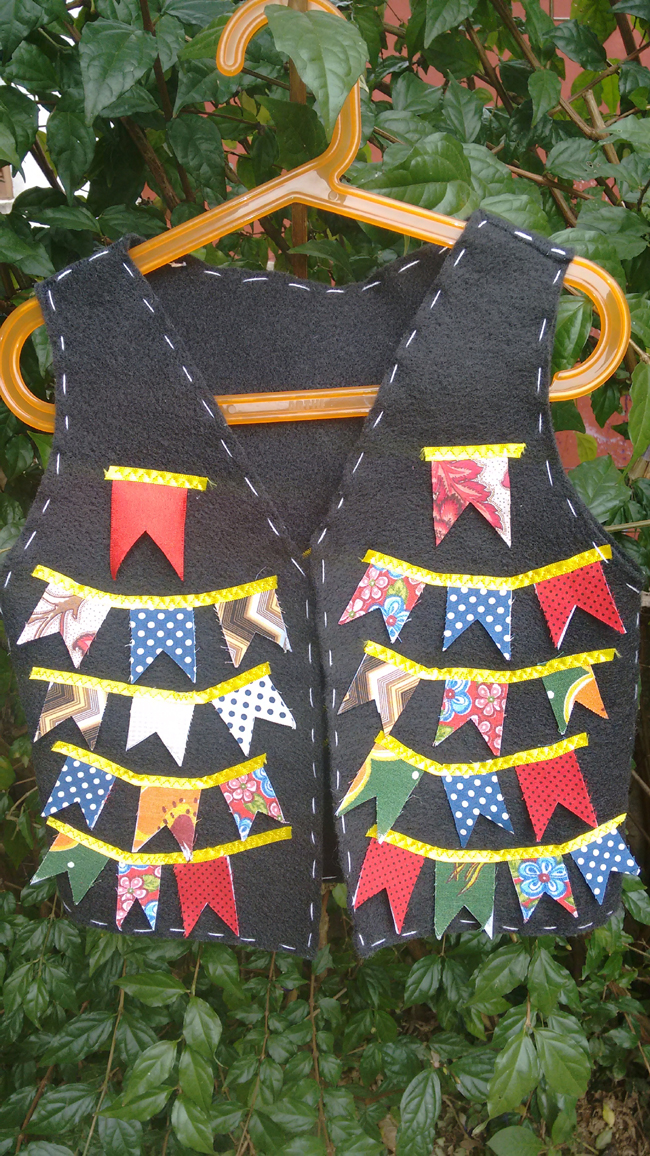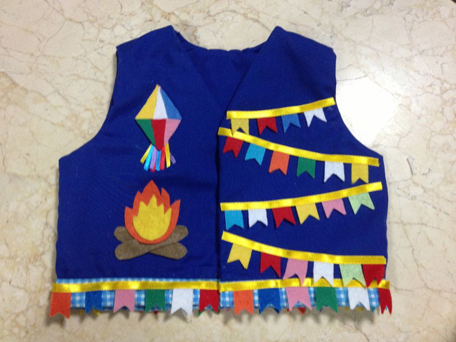 Aprecie outros modelos de roupa de festa junina feita com artesanato, para você arrasar na época caipira. Lembrando que até roupas juninas masculinas podem receber artesanatos.