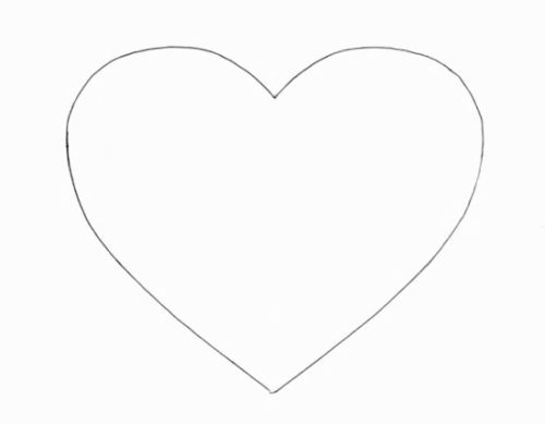 Comece trabalhando o molde do coração para ficar do tamanho que você queira. Você pode levar o molde da imagem acima para um editor de imagens, ou pode fazer um molde com o tamanho que você quiser, dobrando ao meio um quadrado de papelão e riscando uma parte do coração.