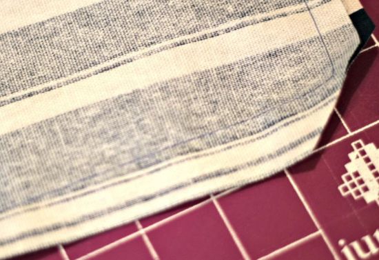 Agora, costure o forro com o mesmo tecido e posicione o forro dentro da sua sacola, com os lados diretos do tecido juntos.