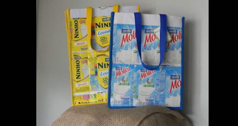 Sacolas Feitas com Caixa de Leite Longa Vida