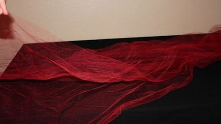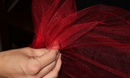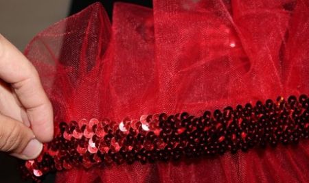 - Fita larga de paetês com a mesma cor do tule escolhido;