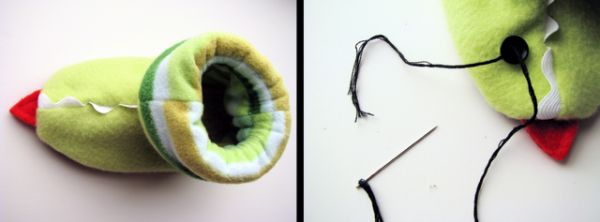 Em seguida, para finalizar a sua peça, costure os botões como se fossem olhos. E está pronto!