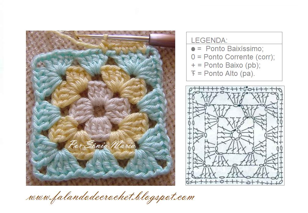 Essa sugestão foi retirada do blog falandodecrochet.blogspot.com. O gráfico ensina de forma bem lúdica e simples como fazer um square de crochê.