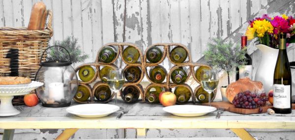 Este suporte rústico para vinho deixará o visual de sua adega ou de sua mesa, em um jantar especial, mais bonito (Foto: homestoriesatoz.com)