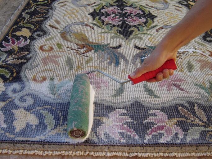 Para finalizar, você precisa prender a peça em uma tabua, é importante que pregue toda a margem por igual, para que o tapete fique com as mesmas medidas em cada ponta, depois você deve passar uma solução de cola branca com a ajuda de um rolo de pintor e deixar o tapete secar ao sol.