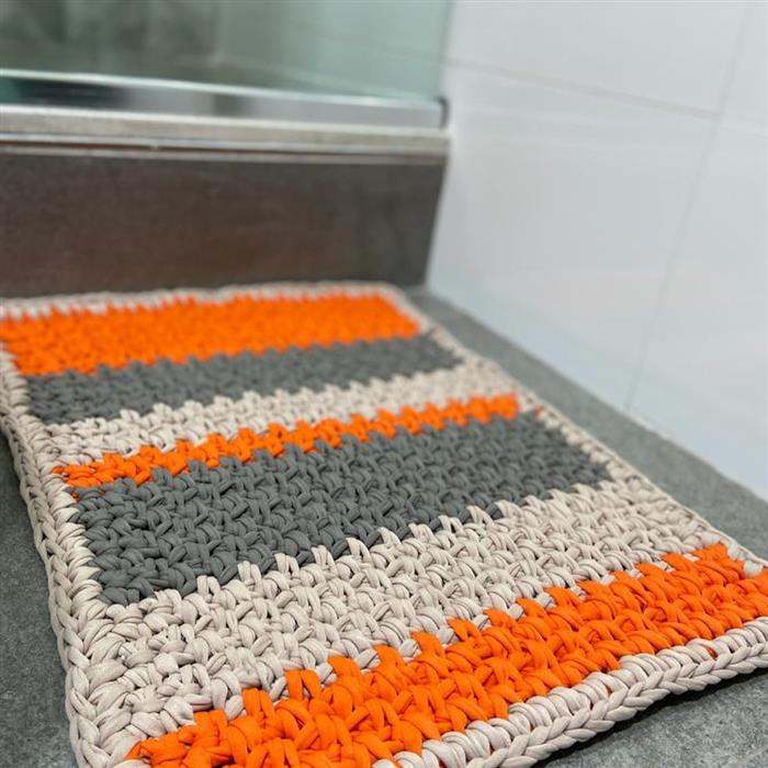 O material é perfeito para tapetes grossos e macios, confeccionados a partir da técnica do crochê ou tricô, montando tramas lindas com os pontos apropriados para o modelo desejado.