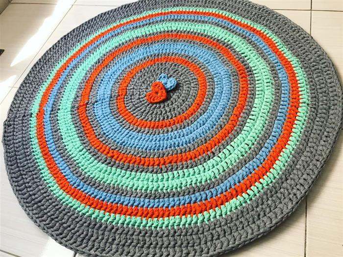 02- Você pode produzir lindos tapetes com fios de malha coloridos