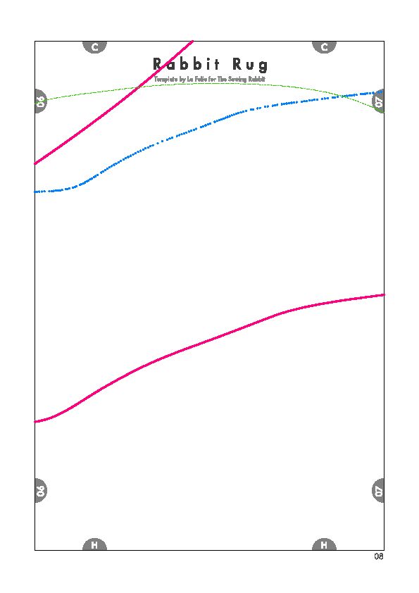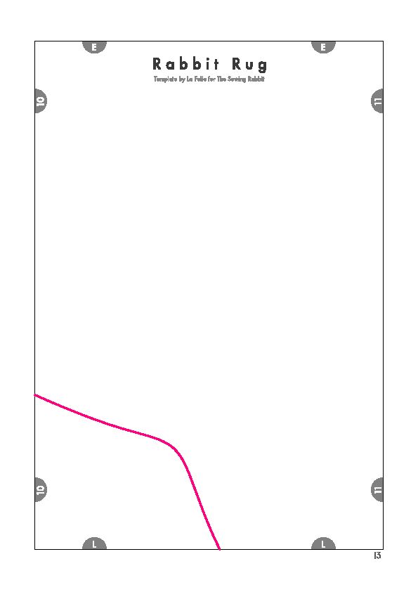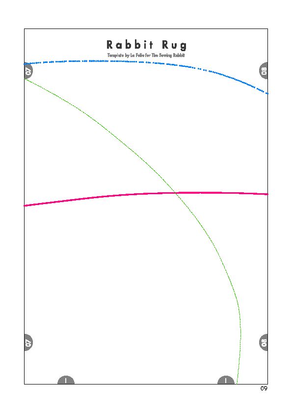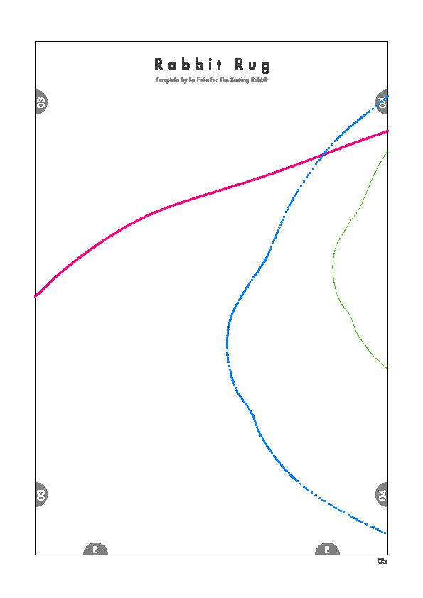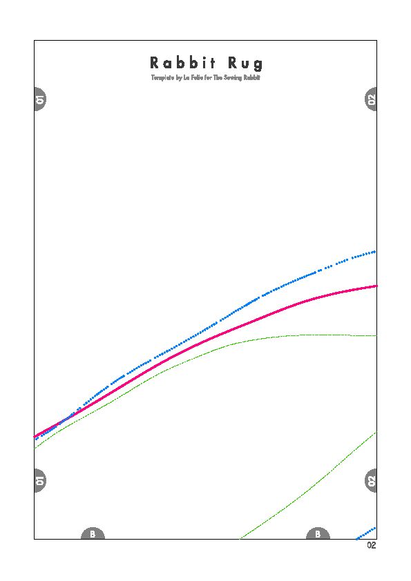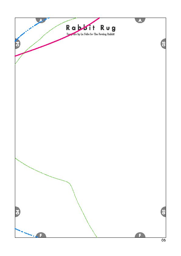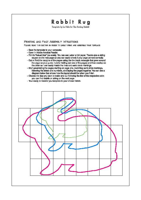 Comece imprimindo as partes do molde. Depois una as partes do molde com o auxílio de pedaços de fita adesiva comum. Recorte ao redor do contorno do coelho escolhido (lembrando que este molde possui três tamanhos diferentes de coelho e você deve escolher o que mais se adequar ao tamanho do quarto de suas crianças). E para facilitar o seu trabalho, siga o esquema de montagem do molde da imagem a seguir, onde cada cor de traço indica um tamanho diferente de coelho para o seu tapete.