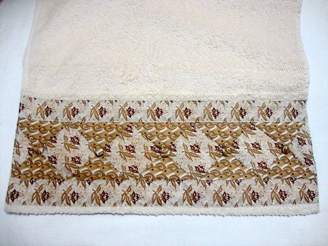 - Agora é preciso posicionar as tiras de 45×5 cm e costurar. Faça a barrinha das pontas e costure na toalha ou peça que deseja decorar. A sugestão de artesanato foi retirada do portal Vila do artesão: www.viladoartesao.com.br