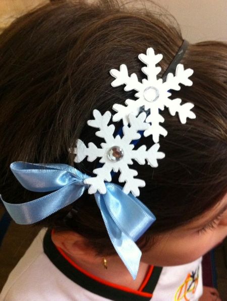 Você pode fazer uma tiara de floco de neve para a sua menina, e assim já fazer a sua garota entrar no clima do Natal, sem falar no look diferente que ela vai desfilar pelas ruas. E você pode fazer cada tiara com uma cor.
