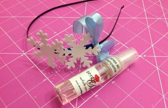 Em seguida, borrife o perfume para papel com a fragrância de sua preferência por toda a sua tiara.