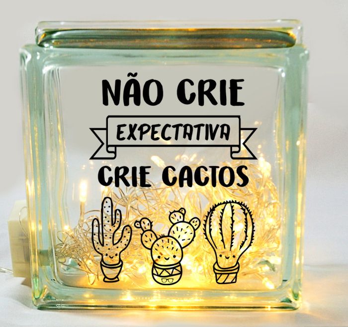 A luminária de bloco de vidro pode ter um pisca-pisca dentro, com você tendo a sua vida facilitada, por fazer apenas um pequeno furo para passar as luzinhas.