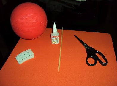 - Tinta PVA com a mesma cor que a cor do EVA, para que o fundo da bola de isopor não fique aparecendo ao final;