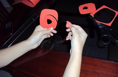 Agora, corte, com o auxílio da tesoura, todas as rosas desenhadas no EVA, e guarde a parte central da rosa que restar.