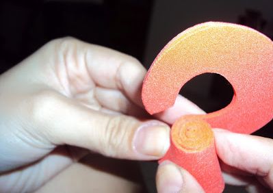 Em seguida, comece a enrolar as tiras de EVA resultantes, começando pelo centro até chegar à ponta de fora.
