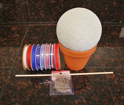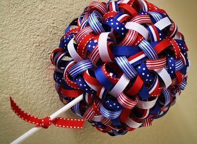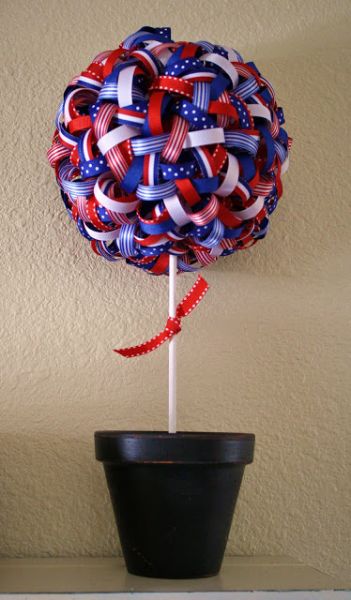 Créditos:http://adiamondinthestuff.com/2011/06/patriotic-ribbon-topiary.html.