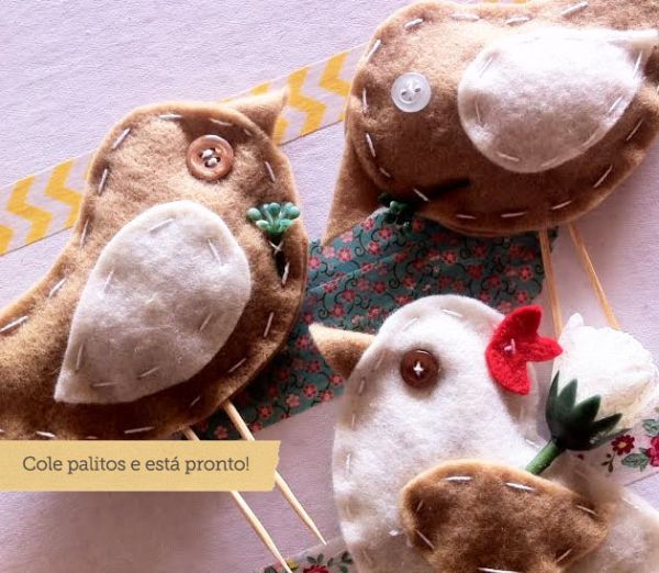 Dicas para Fazer Topo de Bolo Pombinhos de Feltro