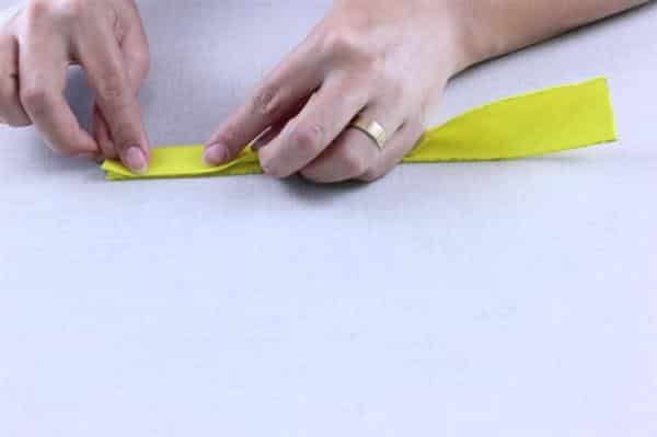Dobre a tira ao meio e cole-a pela extremidades maiores