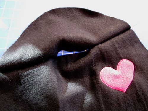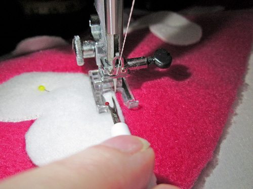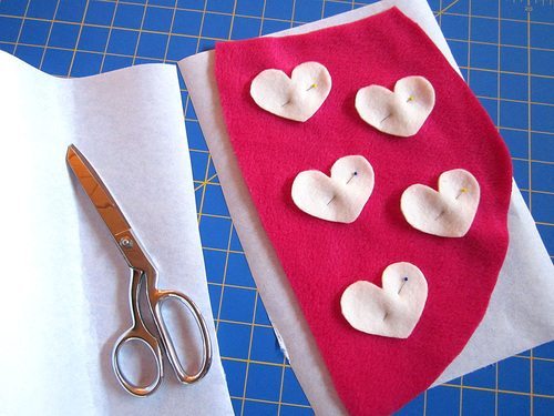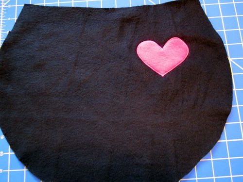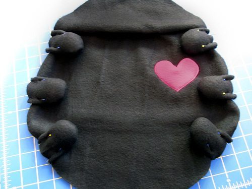 Agora, costure cada olho e corações sobre as partes, com uma costura em ziguezague.