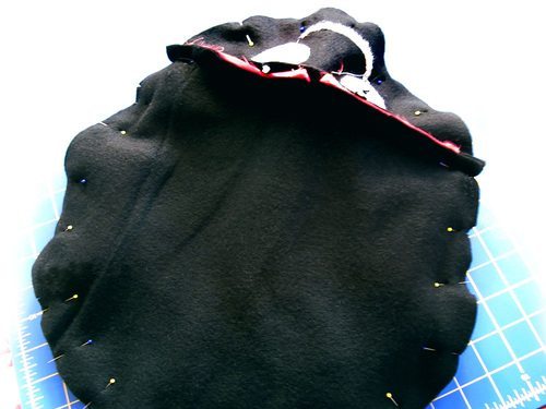 Em seguida, posicione as duas partes da asa juntas, costure, mas deixando uma abertura.