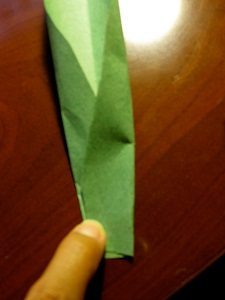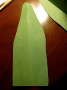 Agora, para fazer as folhas, corte um formato de folha e vinque dobrando ao meio. E depois, junte as duas partes de baixo e cole. Faça quantas flores você quiser.