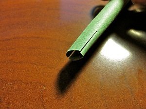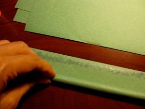 Agora, corte retângulos verdes para o caule, e com o auxílio do lápis, comece a enrolar a tira.