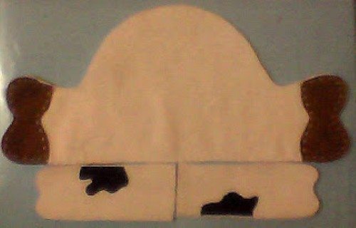 Em seguida monte e costure todas as partes da vaquinha dessa forma. Se for fazer ela com enchimento, esse  é o momento que se deve unir as duas partes e preencher o interior para que ela fique fofinha.