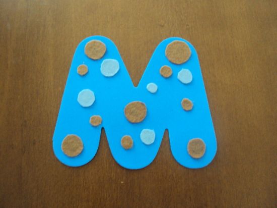 Comece cortando o feltro em círculos e colando em todas as letras com a cola quente. E cole também as patinhas de urso com a cola quente.