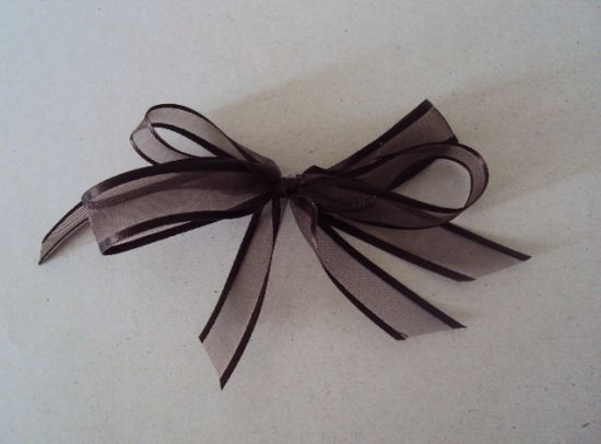 Faça quatro laços com a fita marrom e una dois laços com a cola quente.