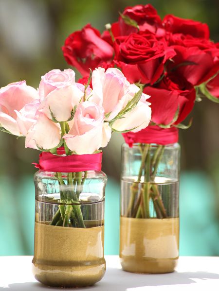 Para repaginar o visual de seu jardim ou da decoração da parte de dentro da sua casa, invista em vaso com pintura que imita ouro, que é muito fácil de ser feito e que pode até mesmo utilizar potes de vidro vazios, para você evitar jogá-los no lixo. E com esta técnica você também pode decorar outras peças de vidro, como jarros, por exemplo.