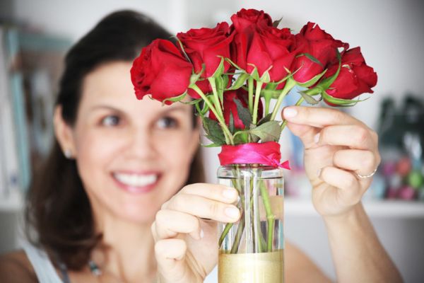 Para finalizar o seu trabalho, basta encher o vaso com água e posicionar flores ou plantas dentro. E está pronto!