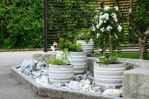 Os vasos de cimento para jardim além de muito interessantes e de se adequarem perfeitamente ao ambiente.