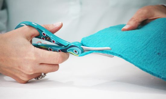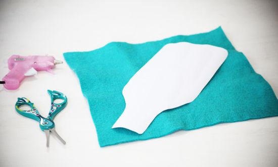 Comece colocando o molde sobre o feltro e risque-o duas vezes com um lápis ou com uma caneta fantasma, que permite apagar o traço após o uso. E recorte as duas partes.