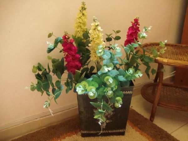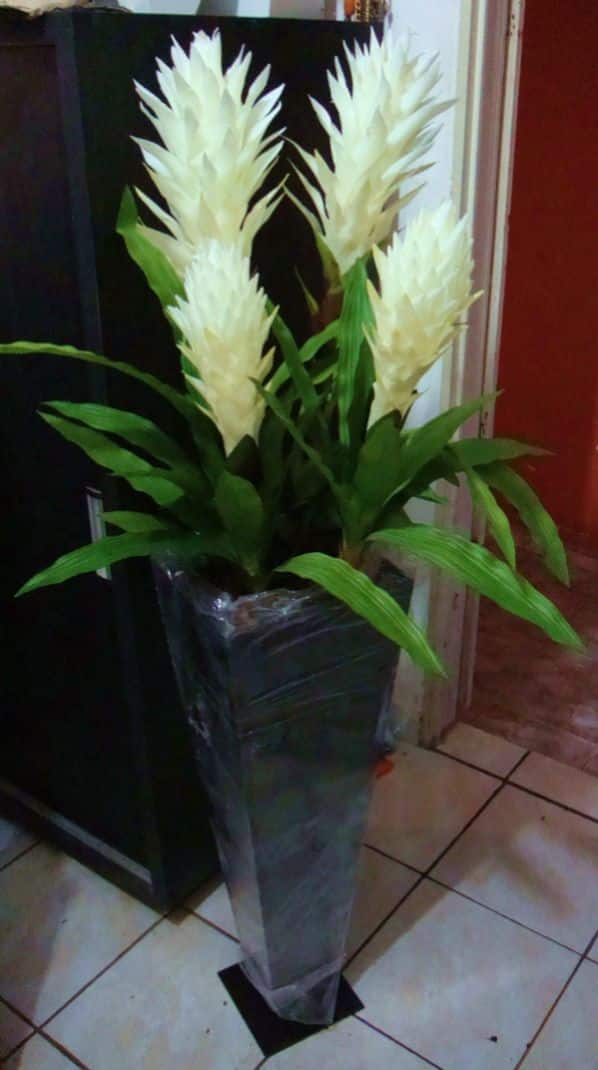 Flores ou plantas artificias podem decorar ainda mais o seu vaso decorativo.