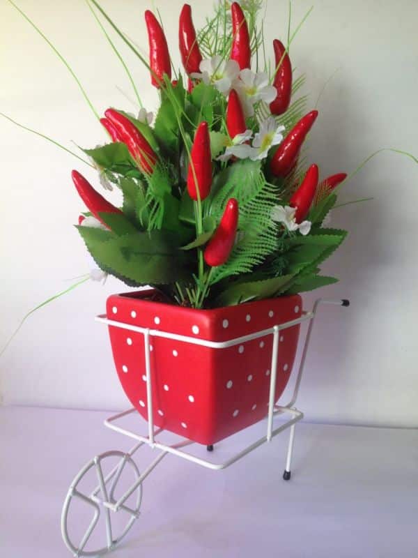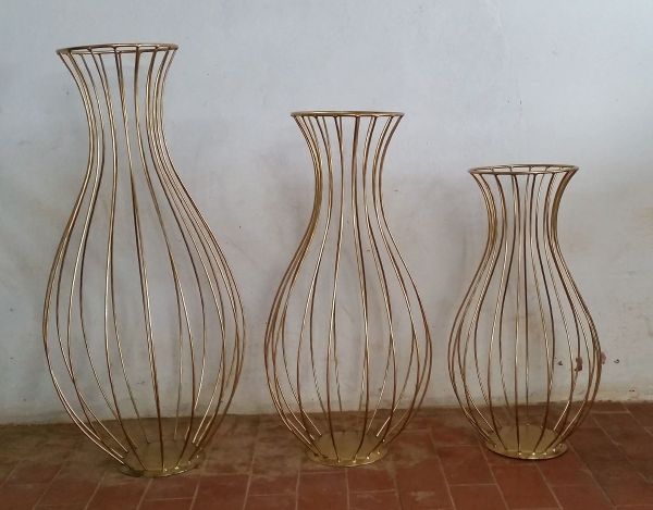Os vasos de chão mais inusitados, como o vaso aramado, além de receber flores artificiais podem também servir como cachepô de vasos menores.