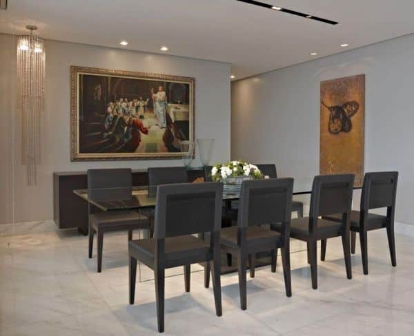 O vaso da sua sala de jantar pode tanto ficar no chão quanto ficar sobre a mesa.