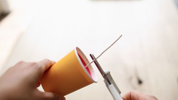 Logo após, posicione o pavio para vela dentro do suporte para vela escolhido, utilizando uma pecinha de sua preferência para prender o pavio de forma central dentro do suporte para vela.